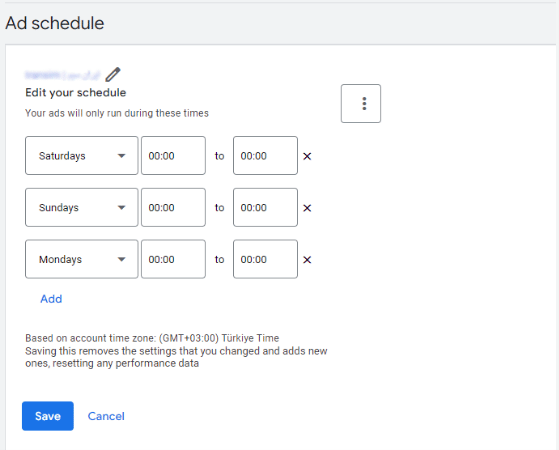 مثلا اگر Time zone شما روی ترکیه و شما در ایران قرار دارید و ساعت 9 میخواهید تبلیغات شما نمایش داشته باشد باید داخل Ad Schedule ساعت 8:30 صبح را شروع نمایش انتخاب کنید. (ساعت ترکیه از ایران نیم ساعت عقب تر است.)